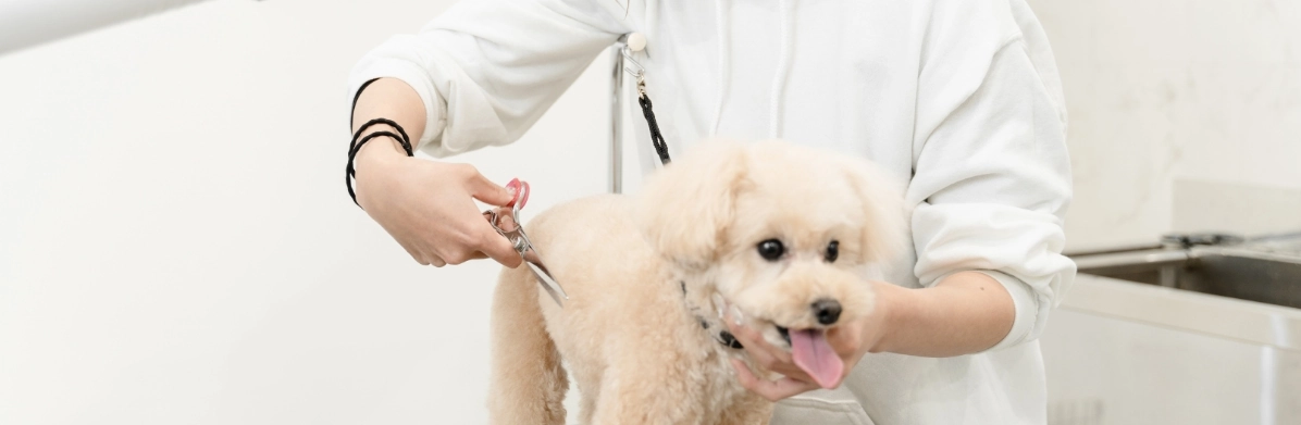 私たちは、ペットのお手入れに必要なシャンプー&カットから部分カット、爪切りなどのお手入れをペットにストレスがかからないよう、最適なお手入れを行わせていただきます。